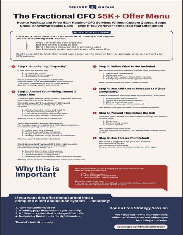 How to Package and Price High-Retainer CFO Services Without Custom Quotes, Scope Creep, or Awkward Sales Calls — Even If You’ve Never Formalized Your Offer Before